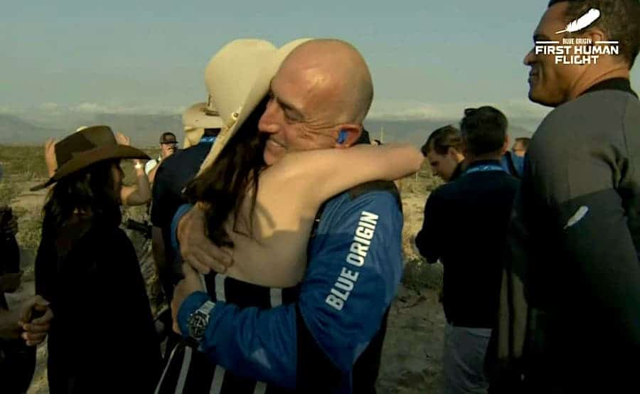 Le milliardaire Jeff Bezos, fondateur d’Amazon et de Blue Origin, vient de se rendre dans l'espace en toute sécurité à bord de l'un de ses vaisseaux New Shepard, accompagné de trois autres membres d’équipage. Ils ont pu profiter de la vue et de l'impensanteur durant quelques minutes avant d'entamer leur descente. « C'est le plus beau jour de ma vie ! », déclarait Jeff Bezos alors qu'il était encore à bord de la capsule, durant son retour sur Terre.