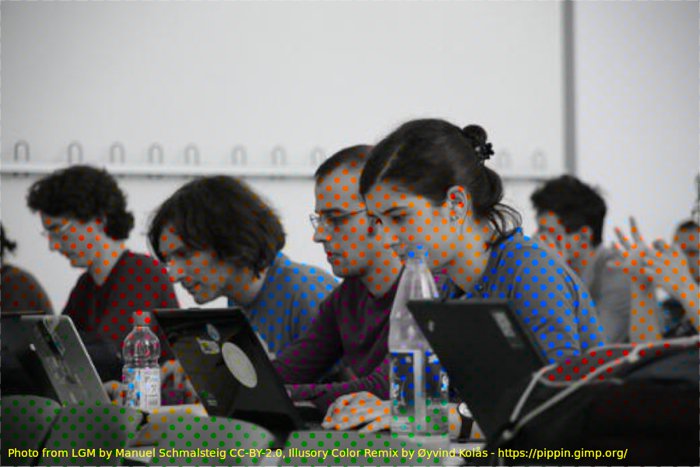 « Une grille colorée sursaturée superposée sur une image en niveaux de gris fait que les cellules en niveaux de gris sont perçues comme ayant une couleur », a déclaré Kolås sur sa page Patreon.