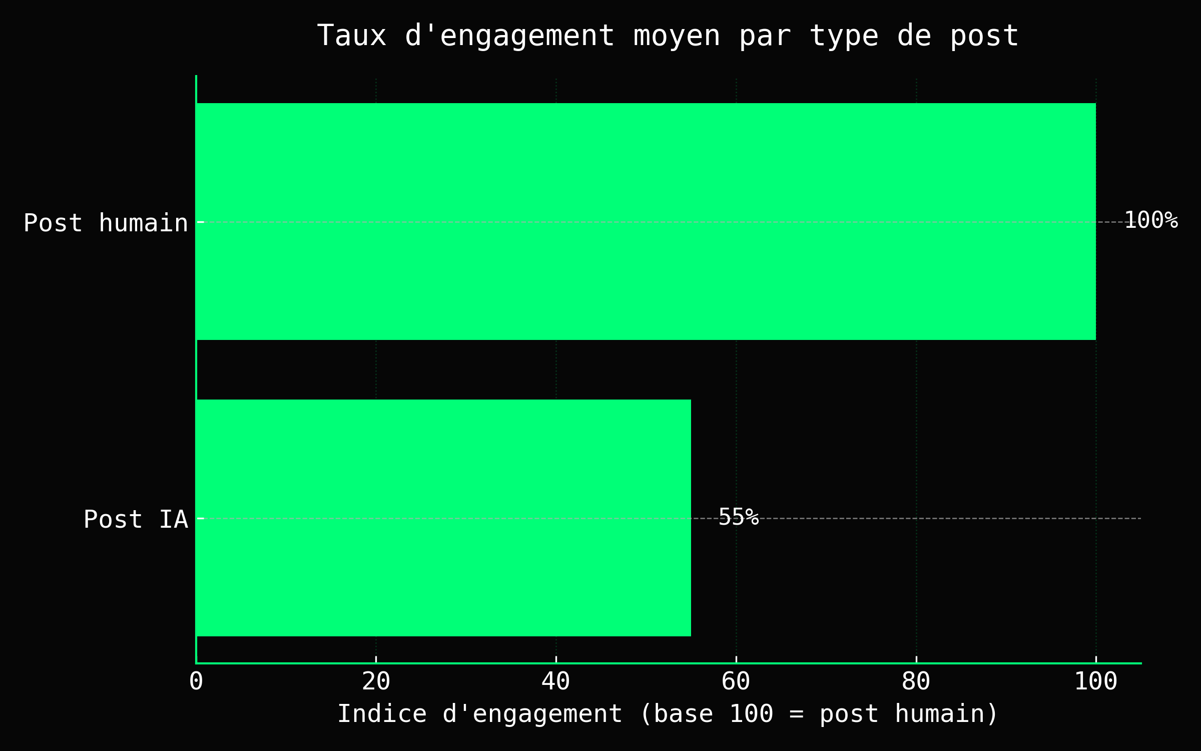 Les données sont tout aussi éloquentes en France. Selon une étude de l’agence Influence Metrics, 61% des posts LinkedIn rédigés en français montrent des signes d’utilisation d’outils d’IA dans leur écriture. Cette statistique confirme que la majorité du contenu LinkedIn est désormais produit ou optimisé par des robots, et non plus par l’inspiration authentique des utilisateurs.